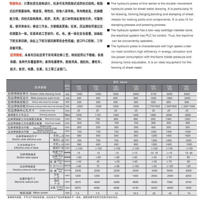 Y28-四柱式雙動(dòng)薄板拉伸液壓機(jī)